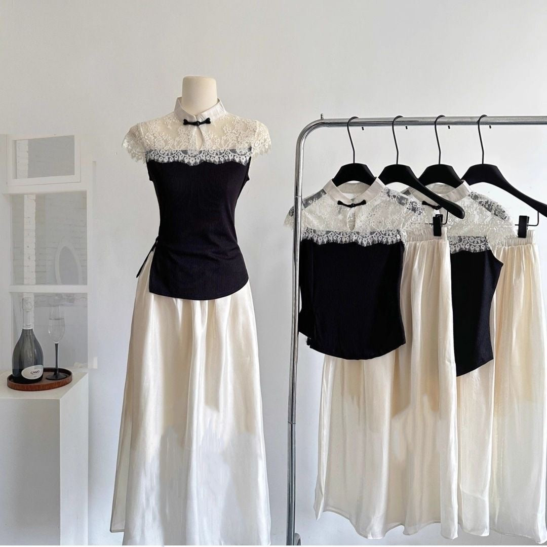 The CNY26’ Marilyn Lace Qipao Top combines elegance and comfort in one chic design. Featuring a delicate lace upper part and a knitted lower section, it beautifully enhances your figure while keeping you comfortable. The mix of textures creates a modern qipao look that makes you appear slimmer and more refined — perfect for festive celebrations or special occasions.
