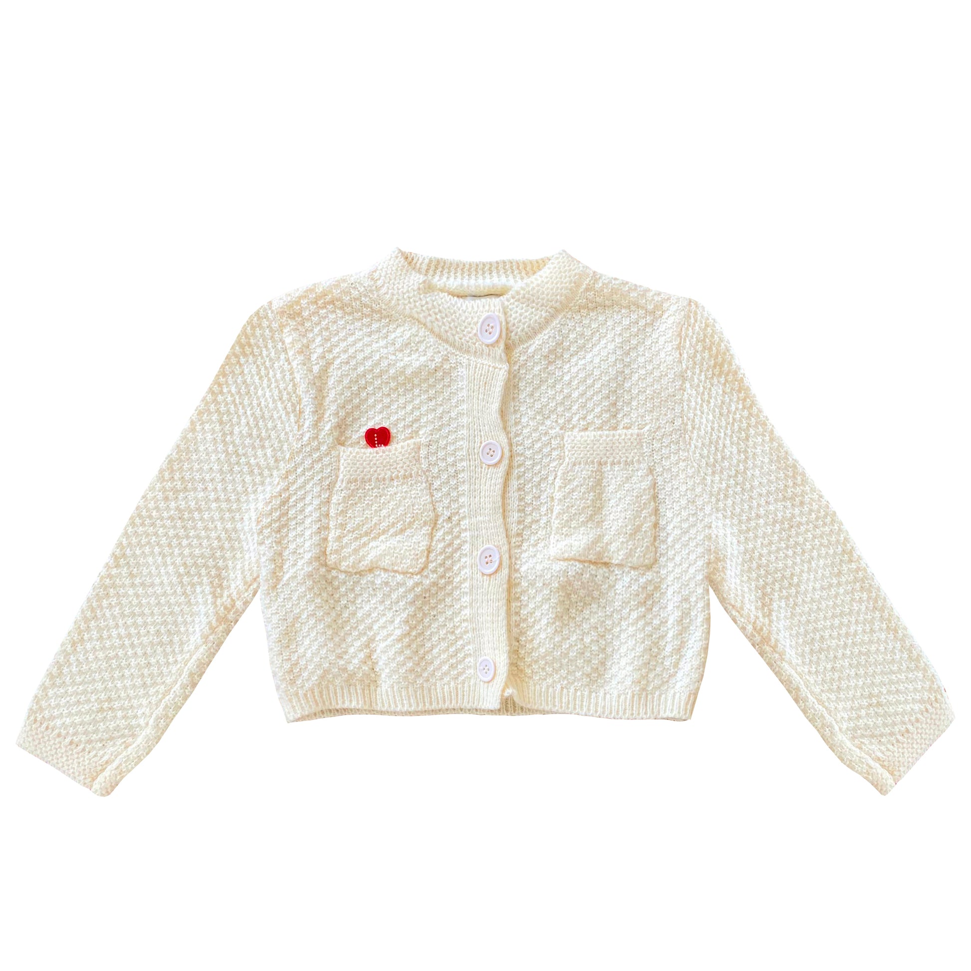 LOVE LUX WHITE ONE-SIDED DIAMOND KNIT CROP CARDIGAN